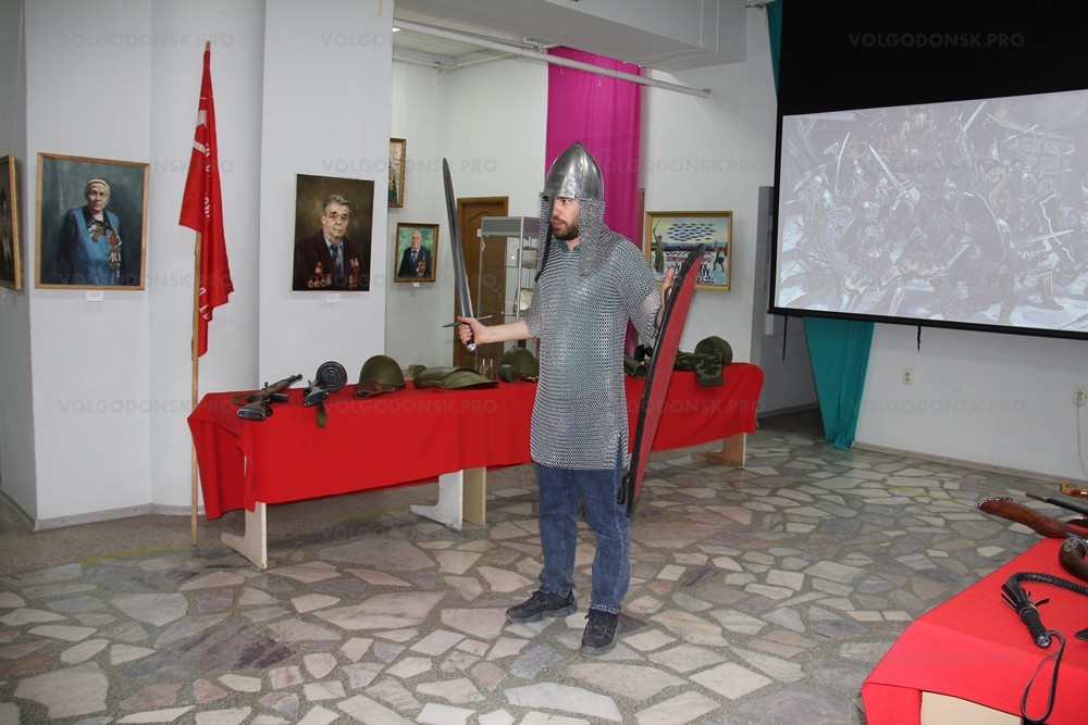 В следующем зале была подготовлена выставка «От витязя до «Ратника». Как все знают, в музеях экспонаты трогать запрещено, но в честь праздника наш художественный музей сделал исключение. Каждый мог взять в руки копии русского оружия и боевой экипировки разных эпох (средние века, Великая Отечественная война и современность) и сфотографироваться с ними. Фотоплощадка вызвала огромный интерес не только детей, но и их родителей.