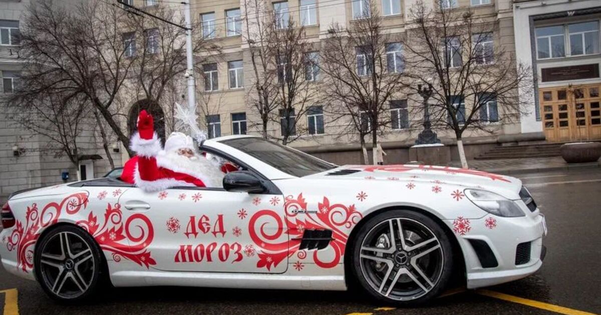 По улицам в Ростове проехал Дед Мороз в новогоднем автомобиле 31 декабря в 2021 году