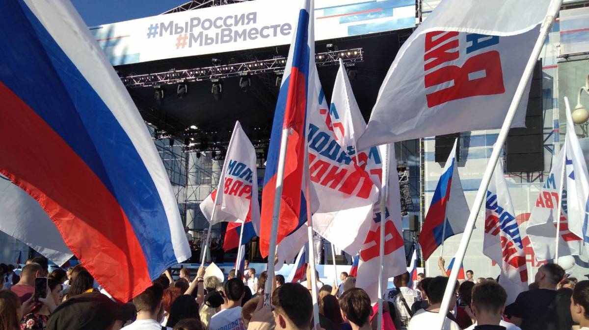 Над площадью вместе с государственными также развевались и флаги «Молодой Гвардии Единой России». В числе участников акции были десятки активистов организации и волонтеры. «Для нас этот день особенный. Потому что все, что мы делаем, делаем ради страны и ее жителей», - поделился руководитель регионального отделения, член федерального Координационного совета МГЕР Николай Ромашенко.