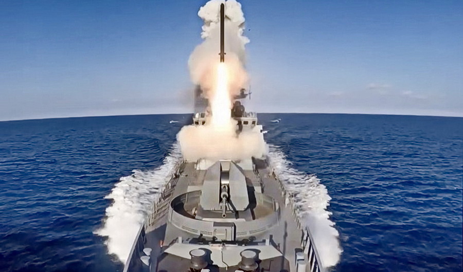 Залп высокоточными ракетами «Калибр» был нанесен с борта фрегата Черноморского флота. Уничтожен пункт управления, где проходило совещание с участием более 50 генералов и офицеров.Фото: Минобороны РФ