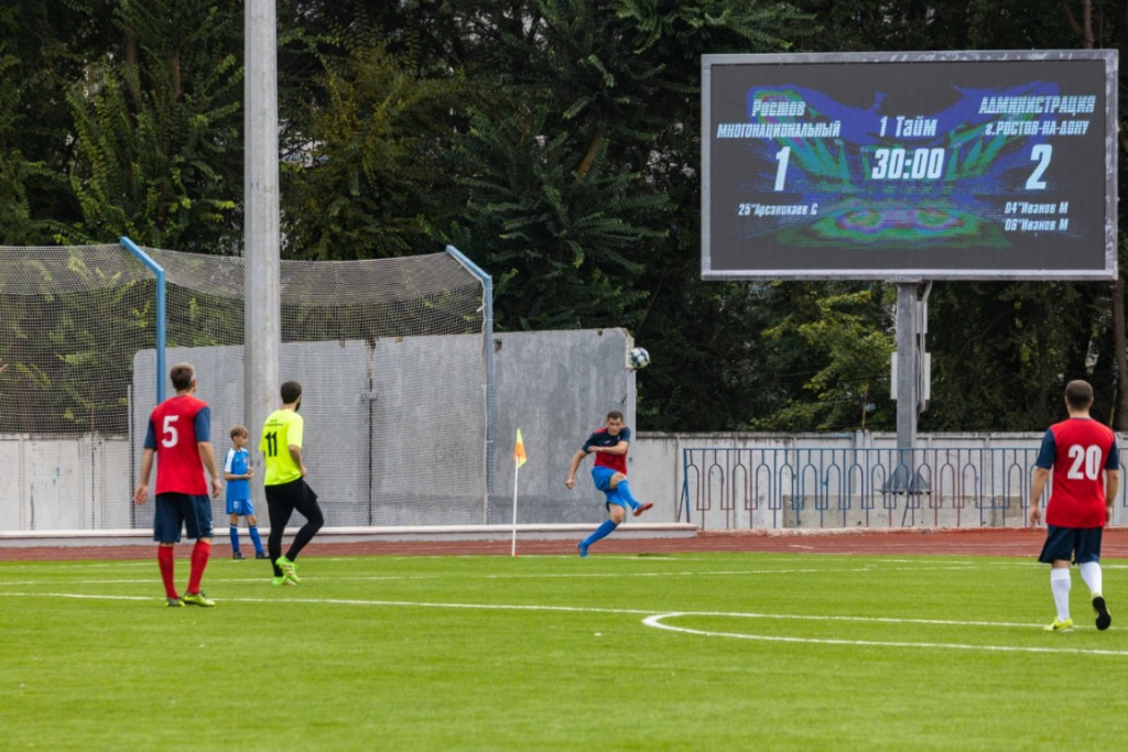 За кубок города по футболу соревновалась сборная ФК «Ростов многонациональный» и команда администрации города В День города Ростова-на- Дону на стадионе «Арсенал» прошёл товарищеский матч между сборной представителей нац