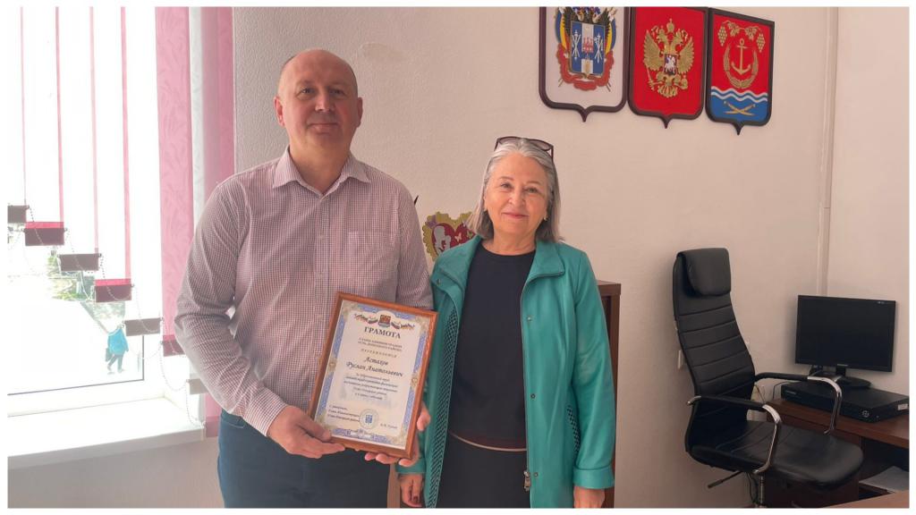 По поручению главы районной Администрации Виктора Гуснай, заместитель главы Администрации Усть-Донецкого района Марианна Гагулина вручила грамоту за личный вклад в развитие физического воспитания подрастающего поколения Усть-Донецкого района и в связи с 50 – летием.