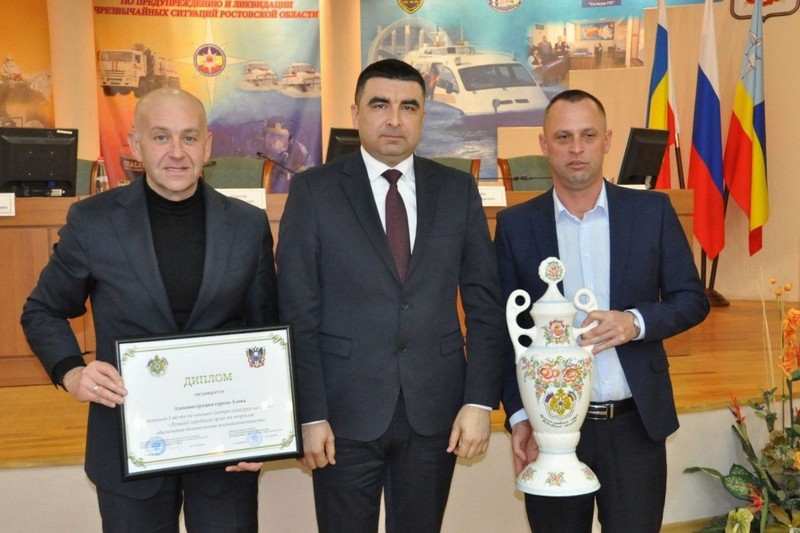 Награждение провел заместитель губернатора Ростовской области Сергей Бодряков, вручив заместителю главы города Азова Роману Ткаченко и начальнику Управления по делам ГО и ЧС Денису Сошину победные диплом и кубок.