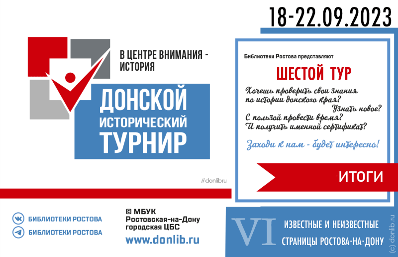 Итоги шестого тура просветительской акции «Донской исторический турнир» «Известные и неизвестные страницы Ростова-на-Дону»