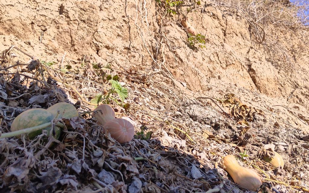 «Спасибо «Таганрогской правде» за наводку. Прочитав на вашем сайте про арбуз, который в октябре зреет между двумя пляжами, дождавшись солнечной субботы, я отправился на поиски: решил увидеть его своими глазами. Путь начал с Центрального пляжа, но пройдя метров 200-300, нашел совсем другую бахчу, на которой растут не арбузики, а тыквы или кабаки. Их довольно много, есть и большие, и маленькие, и зеленые, и вполне уже спелые, оранжевые, которые почти сливаются с глиняным обрывом, на котором растут», — рассказал таганрожец Артур Яковлев.