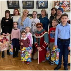 Победителей конкурса пригласили в театр, где состоялась встреча с настоящей Снегурушкой (Анастасия Карпенко) и Пантелеем (Виктор Журавлёв): герои сказочного спектакля вручили ребятам призы.