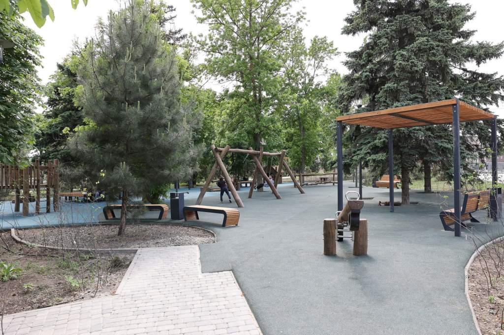 Северная площадь, действительно, преобразилась. В сквере появились велотрасса для экстремального катания, спортивный комплекс «Воркаут», перголы-качели. Установлены наружное освещение, системы видеонаблюдения и автополива, подпорные стены. Обустроены дорожки, тротуары и площадки.