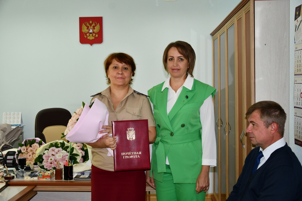 Лучшим сотрудникам отдела Ольга Николаевна вручила награды от администрации Аксайского района.