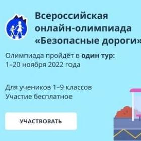 В рамках национального проекта «Безопасные качественные дороги» Минтранс России, МВД России и АНО «Национальные приоритеты» совместно с Министерством Просвещения с 1 по 20 ноября 2022 года проводят Всероссийскую онлайн-олимпиаду для школьников 1-9 классов «Безопасные дороги» на образовательной платформе Учи.ру .