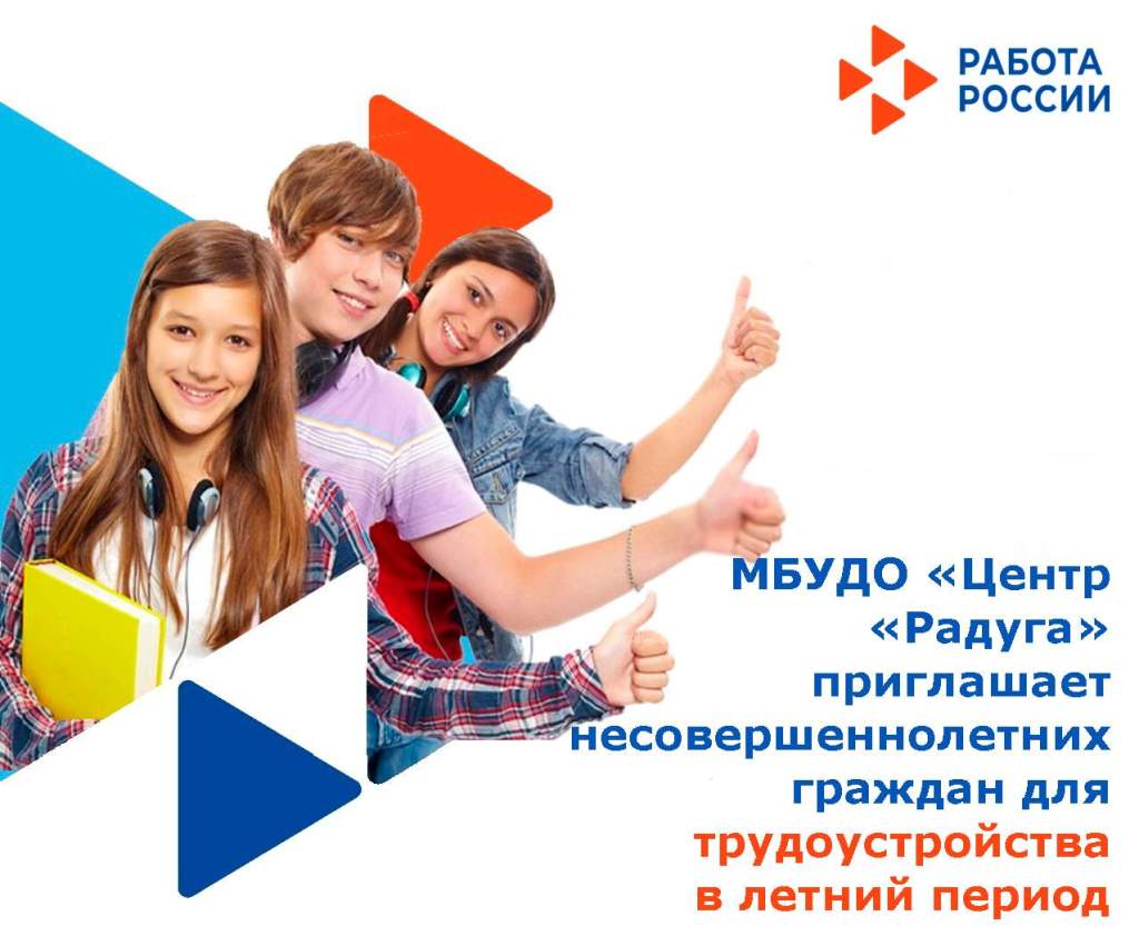 МБУДО МБУДО «Центр «Радуга» г. Волгодонска приглашает несовершеннолетних граждан длятрудоустройства в летний период.