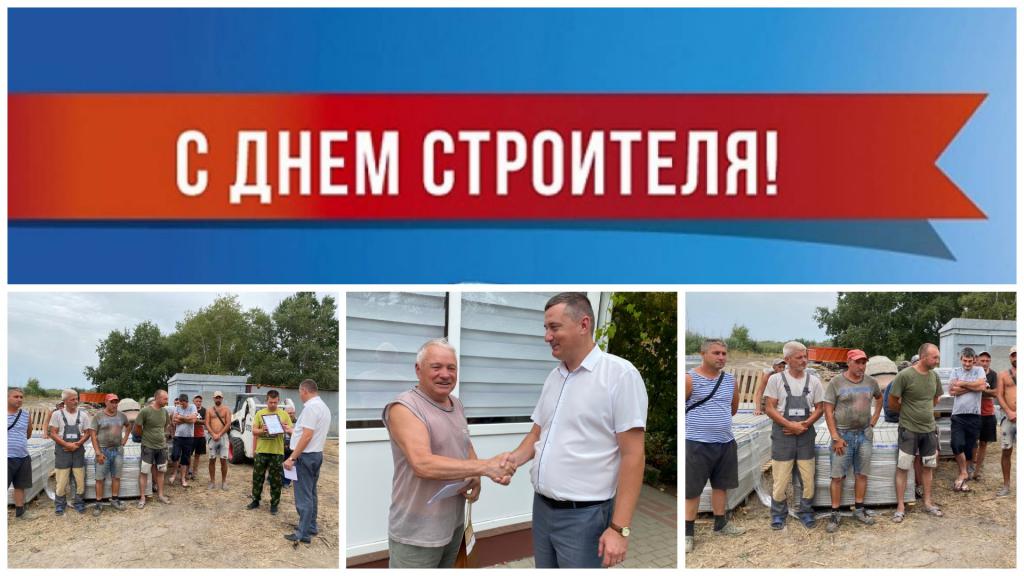Сегодня в преддверии профессиональногопраздника приветственными адресами и благодарственными письмамиглавы Администрации Усть-Донецкого района Виктора Михайловича Гуснай за многолетний добросовестный трудна благо районабыли поощрены работники предприятий строительной отрасли, работающие на территории Усть-Донецкого района.
