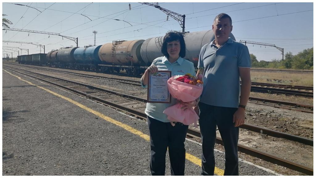 За ответственный подход к своей работе Благодарственным письмом главы Администрации района была отмечена дежурная на железнодорожной станции "Усть-Донецкая" Анжелика Морозова. Она начала свою трудовую деятельность на станции в 1990 году.