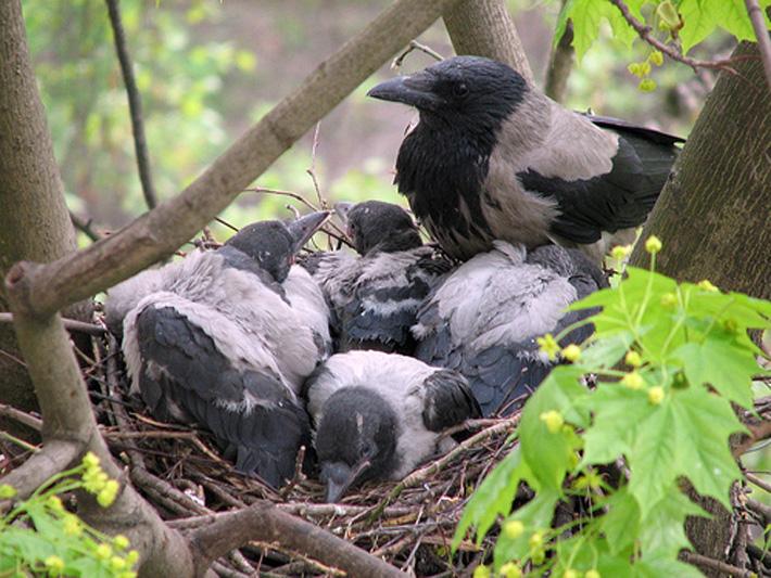 Оказалось, что на деревьях, в том числе и совсем уже древних, вьют гнезда вороны. А разорять гнезда с птенцами негуманно!