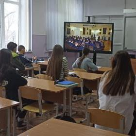 Школьники вместе с педагогами и советниками директора по воспитанию и взаимодействию с детскими общественными объединениями присоединились к Уроку мужества онлайн.