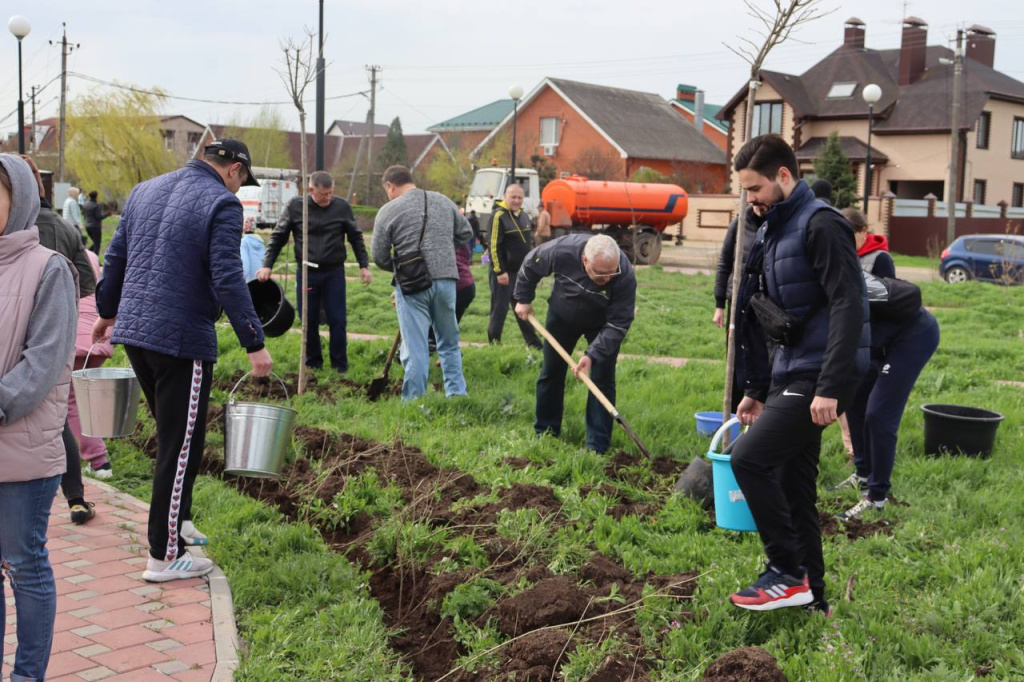 Традиционно вместе с жителями города высадили много молодых деревьев и кустарников, озеленили территорию Батайска.