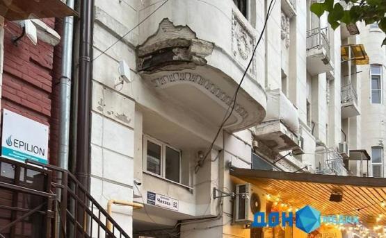 В центре донской столицы рухнула на тротуар часть балкона исторического здания по адресу Чехова, 52. Об этом сообщает «Дон24 ».