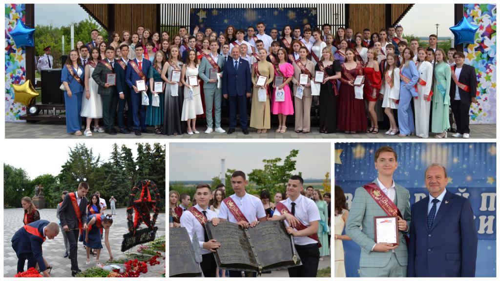 Чествование лучших выпускников в учебе, спорте и волонтерстве проходило на сцене амфитеатра. Для молодых и счастливых выпускников звучали слова поздравлений, напутствий и благодарности. В год педагога и наставника выпускники школ сияли на сцене вместе с любимыми учителями. Вечер завершился праздничной дискотекой.