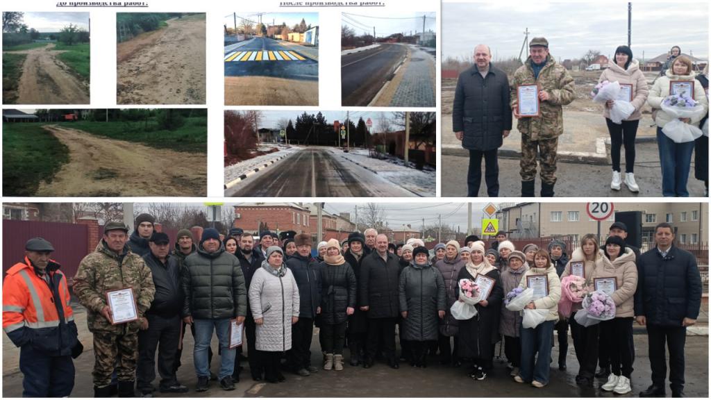 Глава Администрации Усть-Донецкого района Виктор Гуснай отметил, что этот проект был сложным как на этапе проектирования, так и на стадии реализации. «Для специалистов это стало ценным опытом, ведь такие проекты редко реализуются даже в городах. Эта дорога станет стимулом для развития территории, привлекая новых жителей,» – подчеркнул он, поблагодарив дорожников, жителей и службы ЖКХ за вклад в этот значимый проект. В завершение своего выступления Виктор Гуснай наградил специалистов подрядной организации.