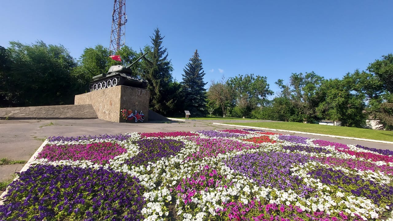 На фото цветник на улице Артиллерийской, возле мемориала «Танк Т-34» и памятного знака «Город воинской доблести».