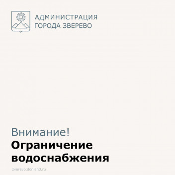 В период с 3 по 6 июня в Зверево подача водоснабжения будет осуществляться со сниженным давлением до наполнения водонакопительных резервуаров.