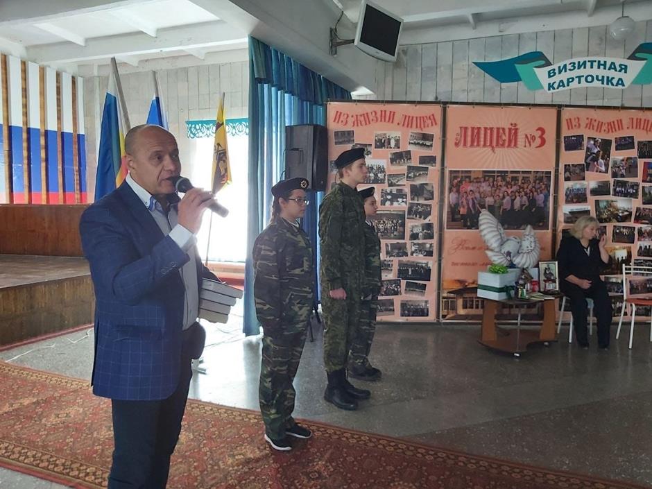 Константин Кузьмич передал для кабинета, где теперь размещена мемориальная доска в память о Юрии Ивановиче Резниченко, набор англо-русских и русско-английских словарей. Это подарок от депутата Законодательного Собрания Ростовской области Ирины Жуковой — тоже, кстати, выпускницы нынешнего лицея, который в её время был ещё школой N3.