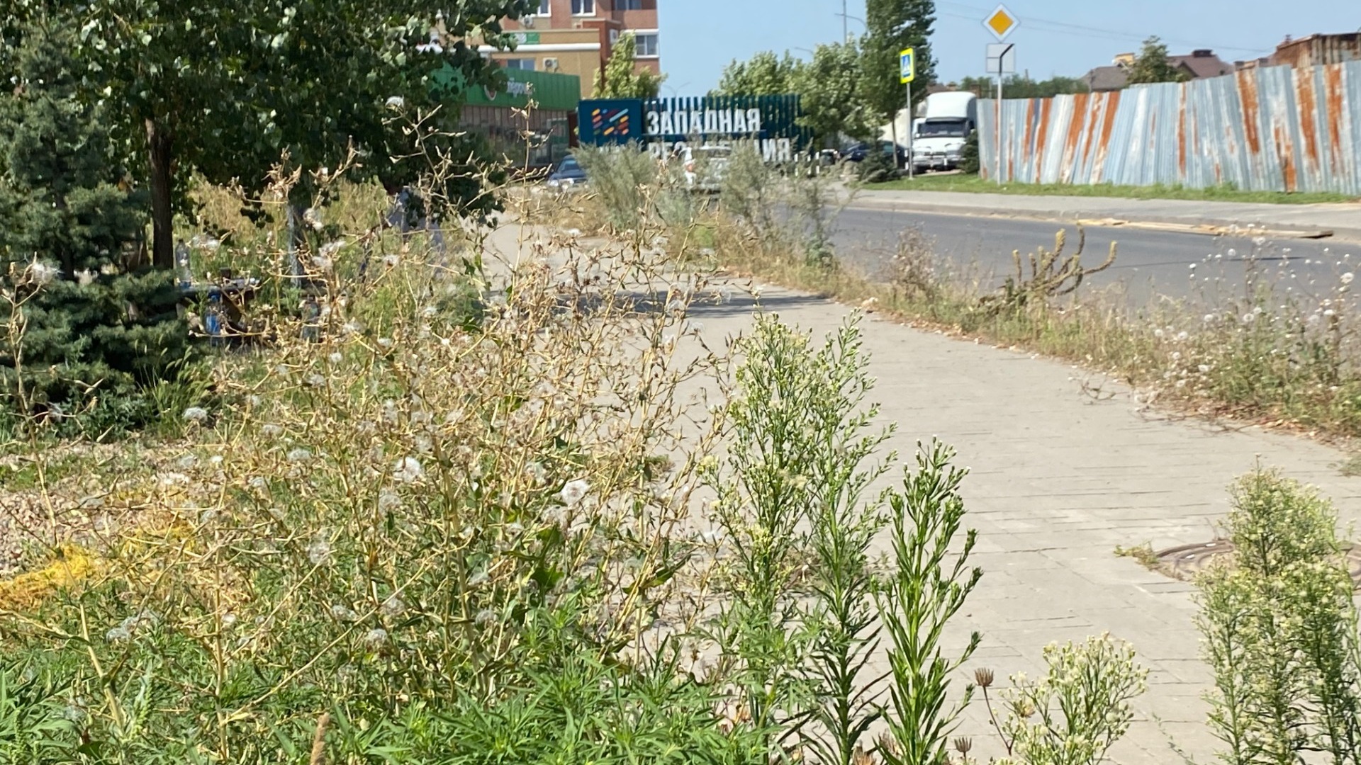 Жители микрорайона Левенцовкий рассказывают, что на их территории разрослись огромные поля с амброзией. Фото: Читатель / rostovgazeta.ruНа заросли не скошенной, полузасохшей травы жалуются жители многих улиц Ростова.