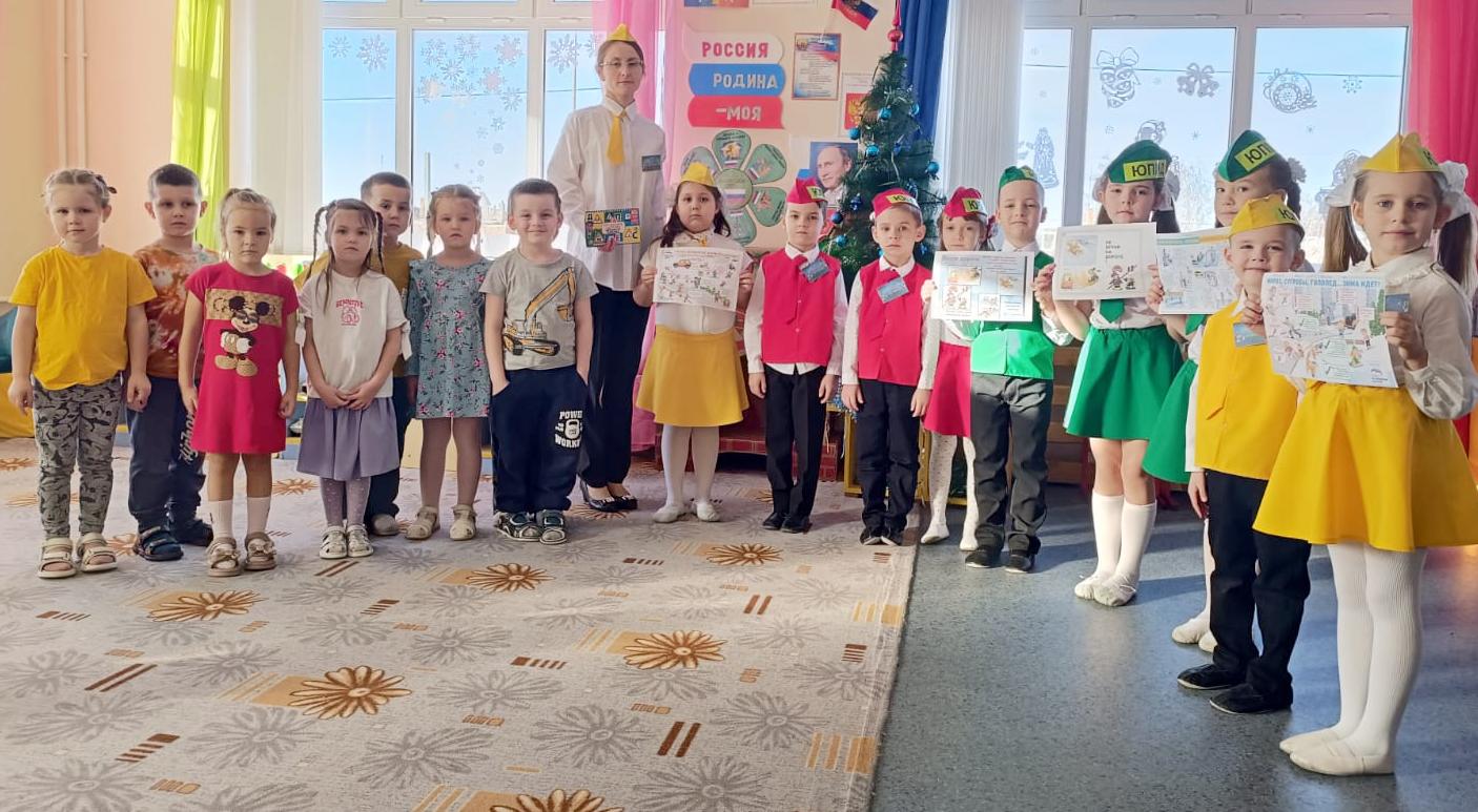 В средней и старшей группах члены команды ЮПИД рассказали воспитанникам о том, где можно, как правильно переходить дорогу с родителями зимой, какие опасности могут подстерегать во время гололёда на дороге, о том, что нельзя кататься на санках и играть рядом с проезжей частью.