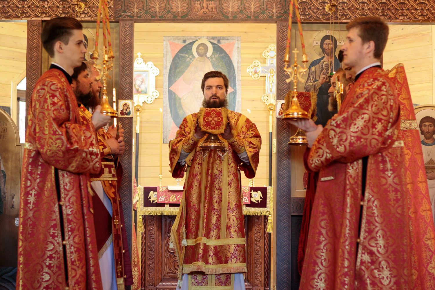 Его Преосвященству сослужили благочинный Восточного округа протоиерей Димитрий Осяк, настоятель храма иерей Александр Георге и клирики епархии. Диаконский чин возглавил протодиакон Николай Нецветаев.