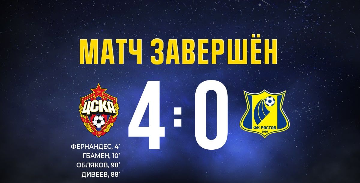 В 30-м туре Российской Премьер Лиги ФК «Ростов» в Москве крупно проиграл местному ЦСКА – 0:4.