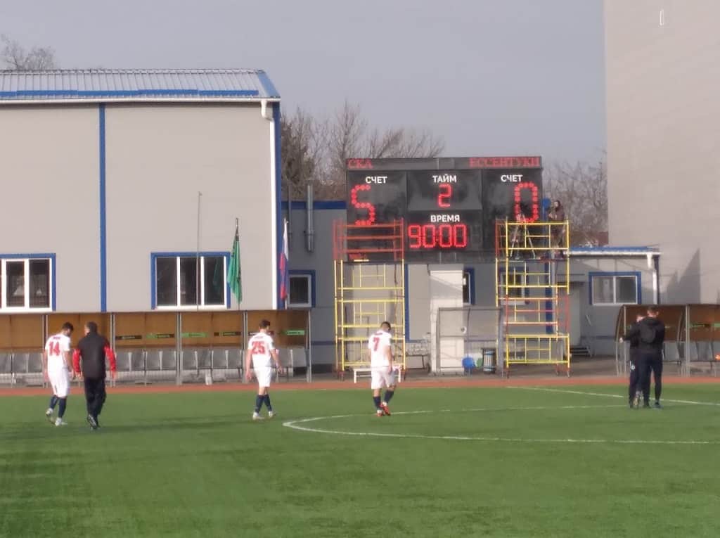 На 83-й минуте индивидуальное мастерство Кирилла Клышы позволило хозяевам довести счёт до разгромного. Футболист «СКА» сыграл в стенку со своим партнером возле штрафной площади и пушечным ударом расстрелял вратаря «Ессентуков». Итог 5-0.