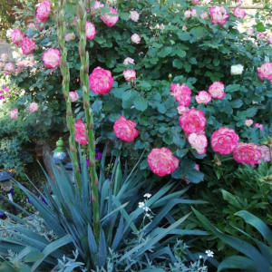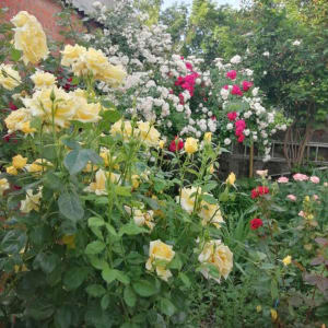 Во дворе красивый розовый сад, клубника, малина, фруктовые деревья, есть место под посадку овощей.