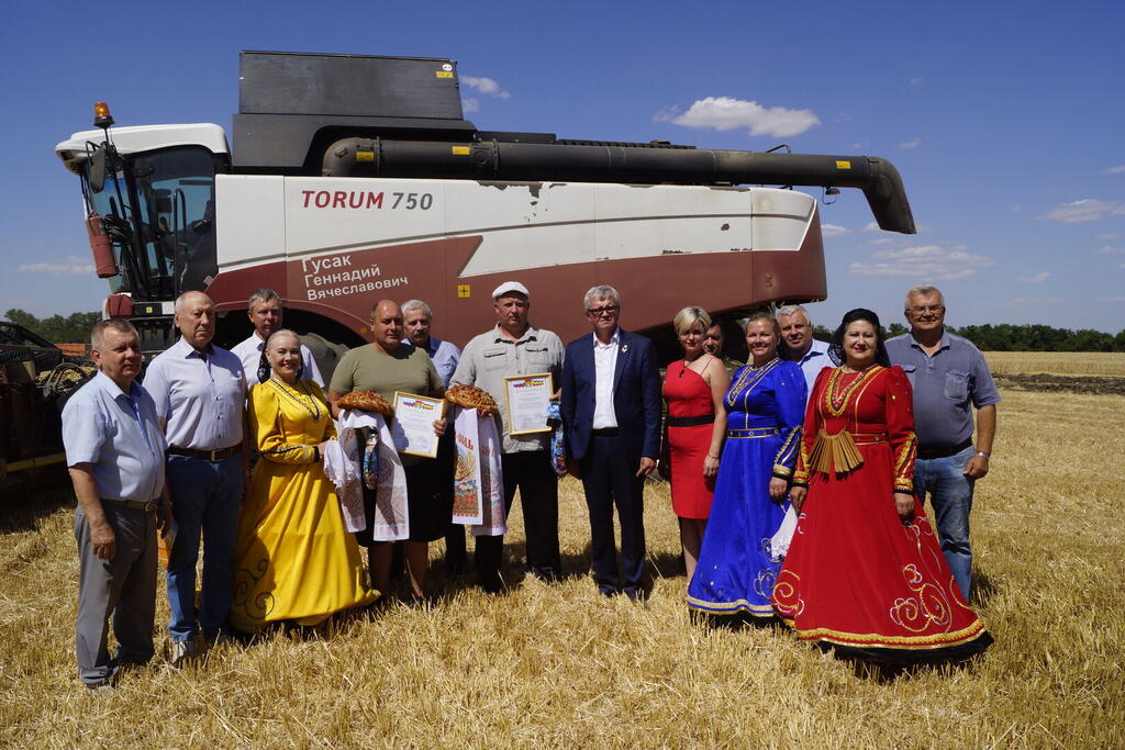В связи с главным событием года и чтобы лично поблагодарить хлеборобов за труд руководитель Администрации Зерноградского района, его заместитель по сельскому хозяйству, главный агроном района, председатель райком профсоюзов и руководитель общественного совета каждую жатву приезжают на поля.