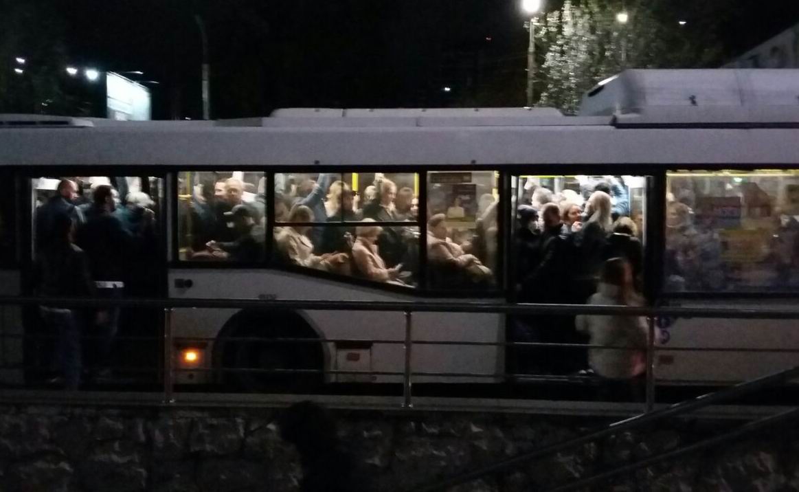 На Горького люди мечутся - не могут втиснуться в автобус. Такая же обстановка на Лермонтовской.
