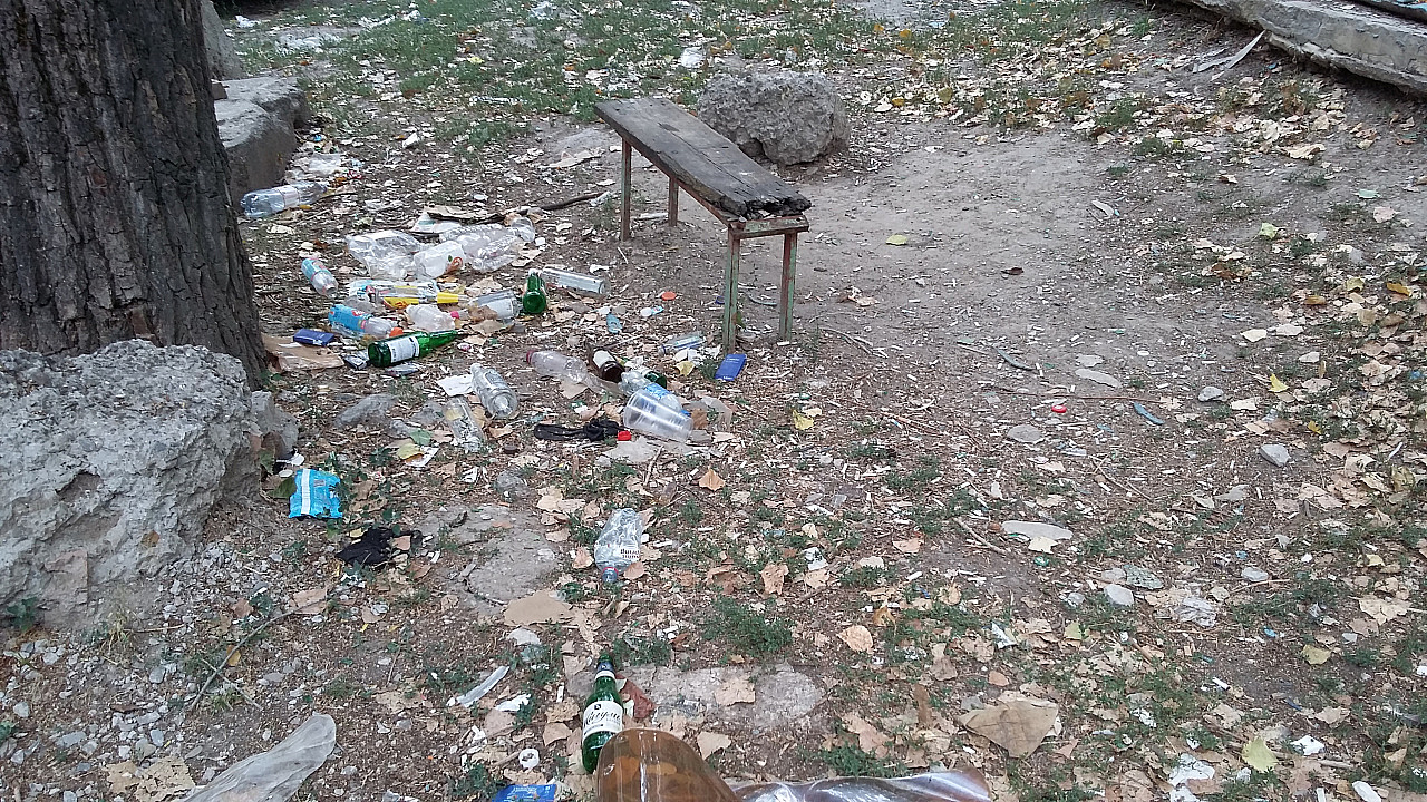 Пустые бутылки, шприцы, собачьи какашки...