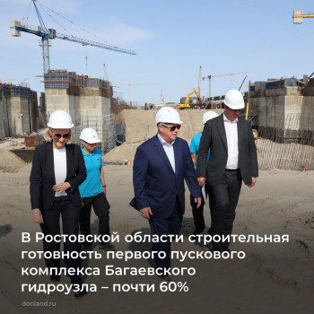 Сейчас строительная готовность важного инфраструктурного проекта федерального значения – Багаевского гидроузла на Нижнем Дону – по первому пусковому комплексу второго этапа приближается к 60%.