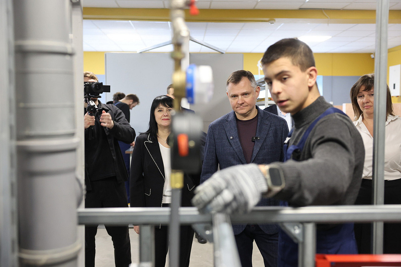 В строительном колледже Юрий Слюсарь посетил учебно-производственные лаборатории. В 17 мастерских, созданных по федеральному проекту «Профессионалитет», студенты учатся сварочному делу, монтажу и ремонту газового оборудования, осваивают профессии маляра, сантехника и другие востребованные в экономике специальности.