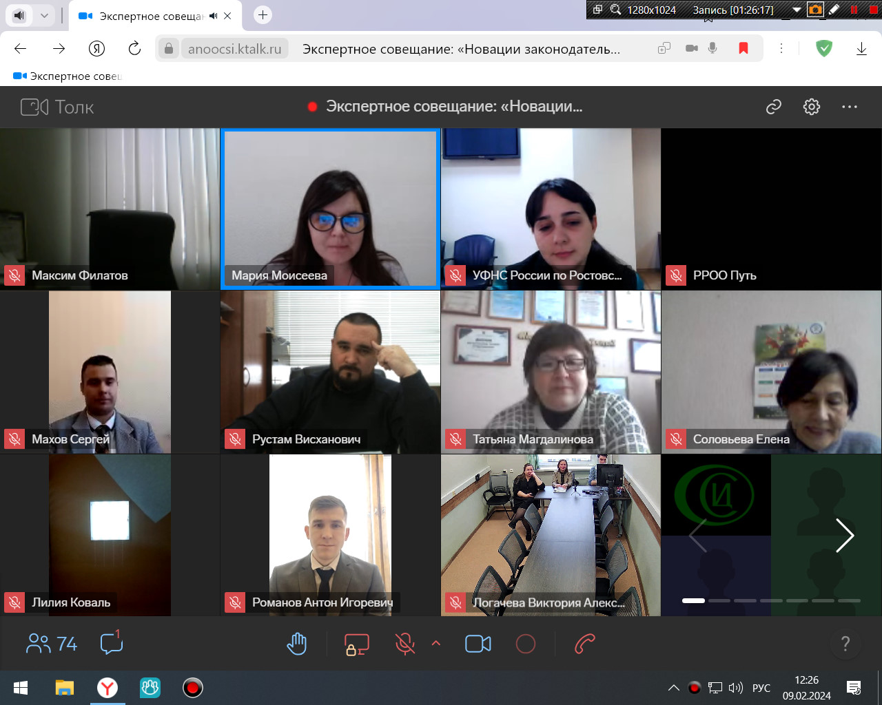 09 февраля 2024 года начальник отдела по делам некоммерческих организаций Виктория Логачёва, заместитель начальника отдела по делам некоммерческих организаций Светлана Серко приняли участие в экспертном семинаре-совещании «Экспертная пятница с Минюстом», с участием представителей Общественной палаты Ростовской области, Правительства Ростовской области, некоммерческих организаций, зарегистрированных как на территории Ростовской области, как и Луганской, Донецкой Народных Республик, органов местного самоуправления Ростовской области по вопросам государственной регистрации и контроля за деятельностью некоммерческих организаций.