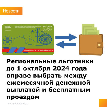 Региональные льготники до 1 октября 2024 года вправе выбрать между ежемесячной денежной выплатой и бесплатным проездом