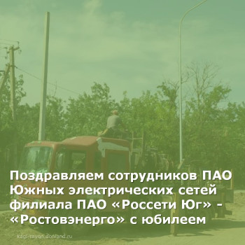 Сегодня, 4 июля, 60 - летие образования ПО Южных электрических сетей филиала ПАО «Россети Юг» - «Ростовэнерго». Поздравляем работников Зерноградского РЭС с профессиональным праздником!