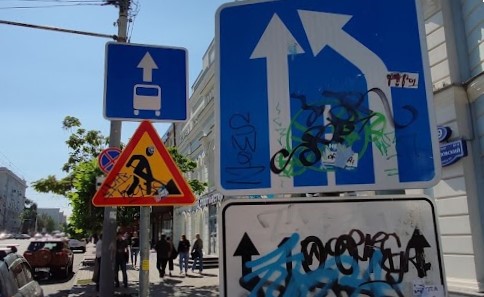 - Обратите внимание на дорожные знаки, указывающие на изменение движения.