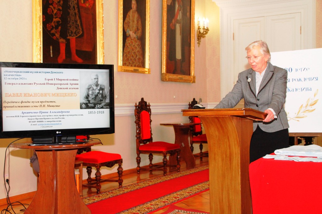 12 октября 2021 состоялась передача в дар новочеркасскому музею предметов, принадлежавших семье генерала П.И. Мищенко. Среди реликвий несколько фотографий, почтовые открытки, в том числе одна - адресованная атаману П.И. Мищенко в Новочеркасск, литография с картины худ. В. Поленова в деревянной раме – дар от сослуживцев своему командиру, а также домашние вещи – плетеный саквояж, кожаный бювар и прекрасной сохранности столовое белье – льняные скатерть и салфетки, с рисунком в стиле модерн. Все предметы – начала ХХ века. Их подарила музею Ирина Александровна Архипченко, (правнучка генерал-майора Иосифа Ивановича Горского, двоюродного брата генерала П.И. Мищенко), доктор биологических наук, профессор микробиологии, Лауреат Премии Правительства России (г. Санкт-Петербург).