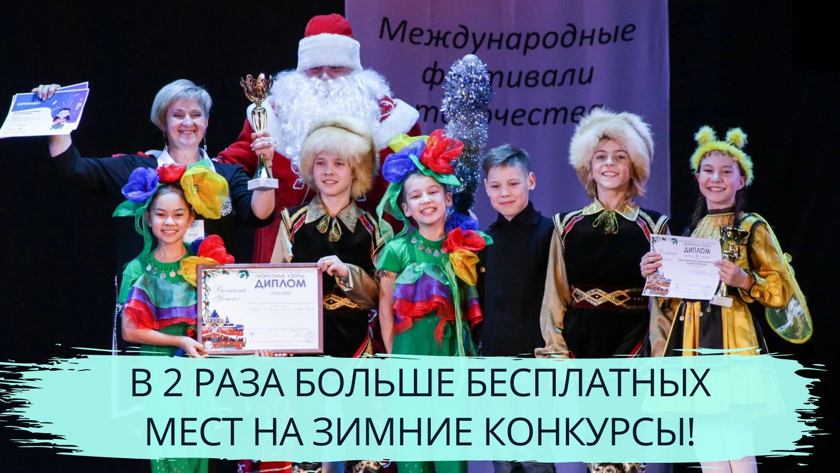 Только ДО 31 ОКТЯБРЯ действует акция по УДВОЕНИЮ БЕСПЛАТНЫХ МЕСТ на следующие фестивали-конкурсы: