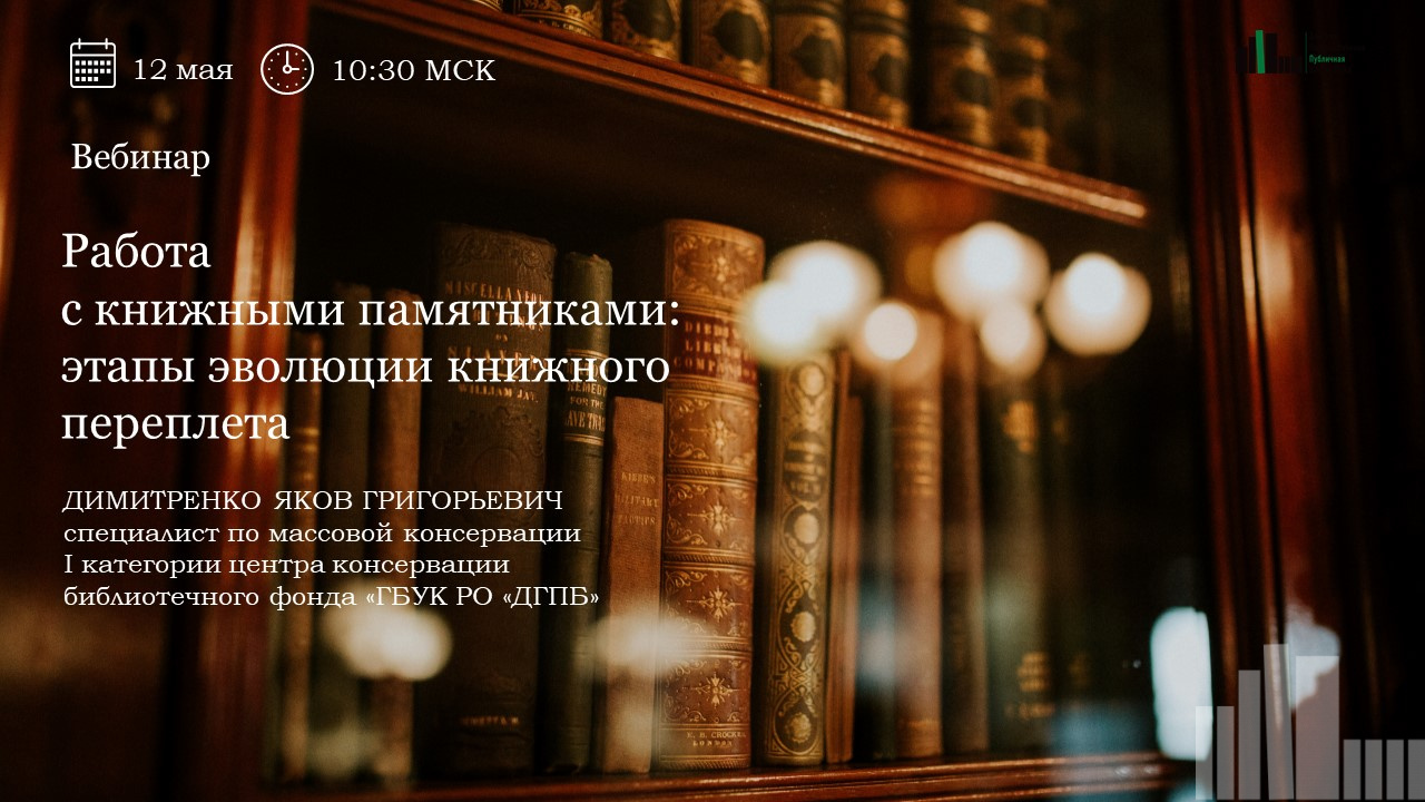 Спикер вебинара – Димитренко Яков Григорьевич, специалист по массовой консервации I категории центра консервации библиотечного фонда ГБУК РО «ДГПБ».