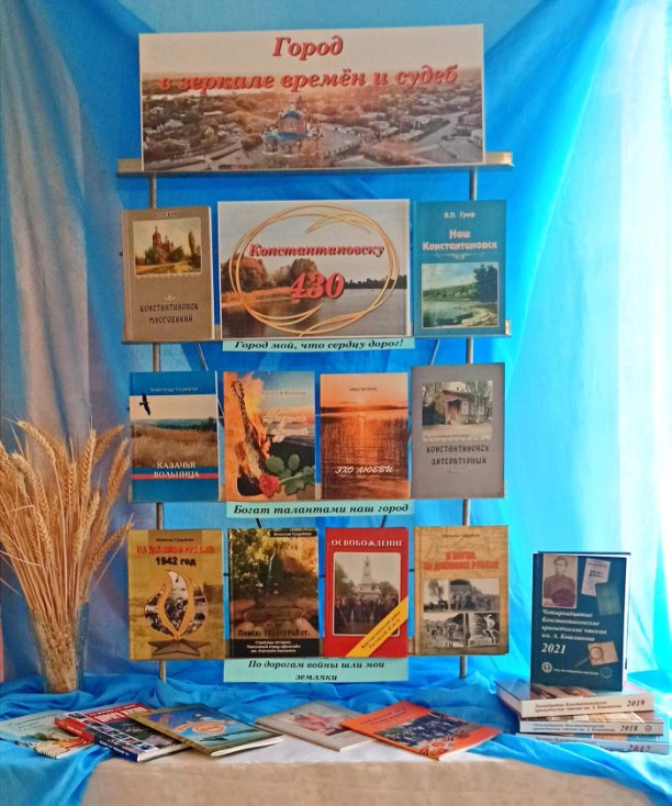 «Город мой, что сердцу дорог!» знакомит читателей с историей, достопримечательностями и людьми, чьи жизни и судьбы связаны с Константиновском. В разделе «Богат талантами наш город» представлены сборники местных поэтов и писателей, воспевающих красоту и величие родного края. Заключительный раздел «По дорогам войны шли мои земляки» представлен книгами, в которых собраны рассказы фронтовиков, истории поисков, информация родных, документы архивов годов Великой отечественной войны.Выставка рассчитана на широкий круг читателей. Знакомство с представленными книгами будет полезно для всех, кому интересна краеведческая тематика.