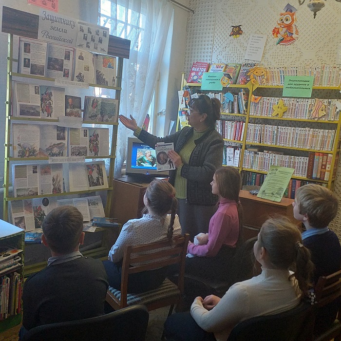 Накануне Дня героев Отечества в библиотеке им. А. Л. Барто прошло мероприятие «Воинская слава России»