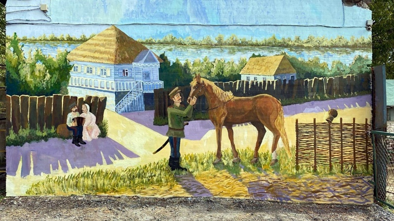 На территории Эколого-биологического центра Новочеркасска накануне Покрова появилось яркое изображение – мурал художника Ивана Галушкина с изображением станичной улочки.