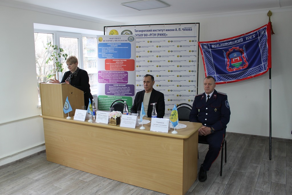 22 февраля на факультете истории и филологии состоялось мероприятие, посвященное Дню защитника Отечества «Память сквозь века: «Россия ответит на любые вызовы. Правда за нами!». Соорганизаторами выступили юртовое казачье общество «Неклиновский юрт» (атаман – В.П. Дьяченко) и районный совет ветеранов и общественной организации ветеранов боевых действий "Саланг" (председатель – В.А. Ташпулатов).