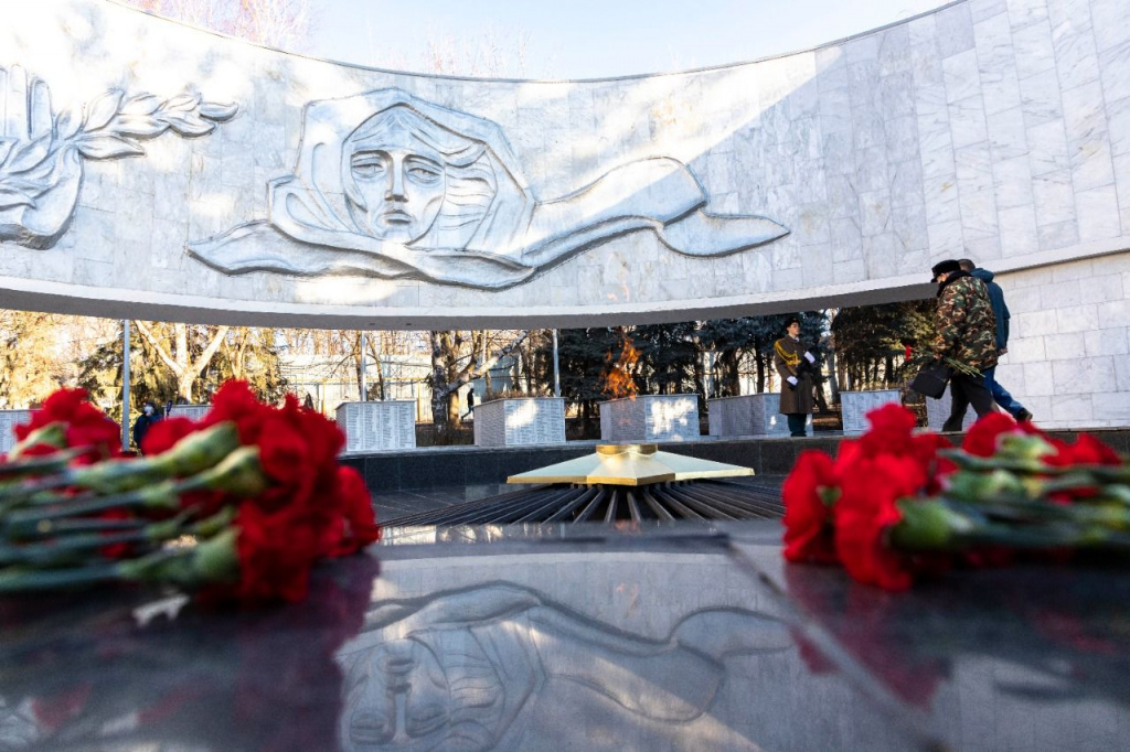 Сегодня, в честь 79-ой годовщины освобождения Ростова от немецко-фашистских захватчиков, в городе почтили память Героев около мемориального комплекса «Павшим воинам» в сквере имени Фрунзе.