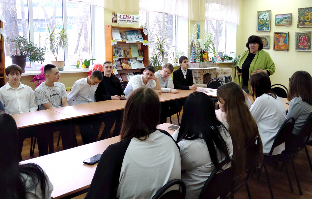 Лилия Давыдовна рассказала старшеклассникам о поездках на Донбасс в составе творческого десанта литературно-творческой студии «Ступени», членом которой она является. Ребята слушали с огромным интересом, затаив дыхание. Звучали стихи из книги «Рябиновая осень» о родных местах автора, о любви, о жизни и, конечно же, о наших славных воинах, стоящих на страже Отечества.