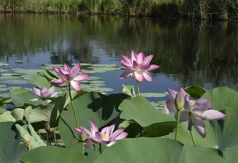 Гости, приехавшие в Калмыкию в июле-августе, смогут приобщиться к удивительно прекрасному явлению цветения лотосов, своими глазами увидеть редчайшие виды розового лотоса, известного как Священный лотос. Это самый редкий вид этого растения, он поражает своими размерами и чудесным ароматом.